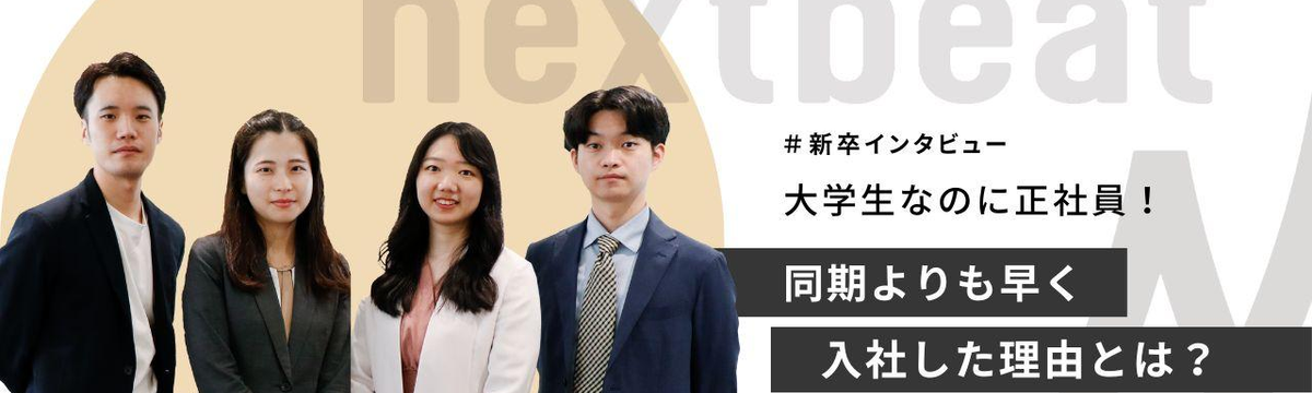 ネクストビートのカルチャーと成長 over 2 years ago Follow ネクストビート 採用担当 【早期入社新卒インタビュー】大学生なのに正社員!同期よりも早く入社した理由とは? ネクストビート新卒社員インタビュー!今回は、早期入社制度第一号で、新卒初の役員となった野田さんと早期入社経験をした4名が対談しました!年齢・性別・経歴が全く関係なく様々なバックグラウンドを持つ社... Read more