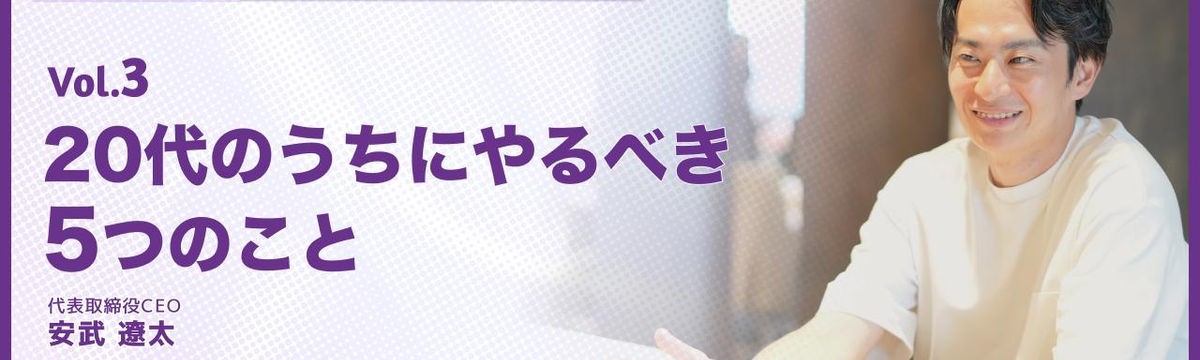 代表インタビュー about 1 month ago Follow Nao Arai and 1 others 安武社長、本音聞いてもいいですか?〜Vol.3 20代のうちにやるべき5つのこと〜 動けば未来が変わる、動かなければ何も始まらないーー。連載「安武社長、本音聞いてもいいですか?」の第3回目のテーマは「20代のうちにやるべき5つのこと」です。CEOの安武さんが、若手時代に体験した... Read more