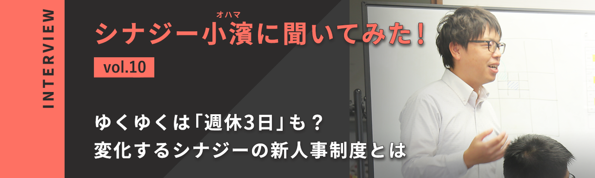 株式会社シナジー almost 2 years ago Follow 乾 恵 and 1 others ゆくゆくは「週休3日」も?変化するシナジーの新人事制度とは このシリーズでは、株式会社シナジーの社員や役員にインタビューを行い、「シナジーってどんな人がいるの?」「ぶっちゃけどんな仕事してるの?」「シナジーに決めた理由は?」などなど、赤裸々に話してもらい... Read more