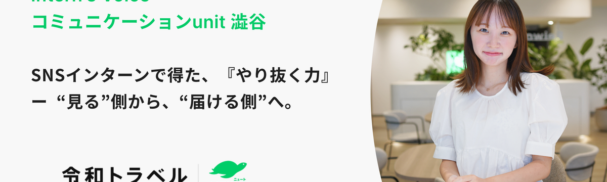 株式会社令和トラベル about 1 month ago Follow 令和トラベル HR SNSインターンで得た、『やり抜く力』ー “見る”側から、“発信する側”へ。 初めまして!令和トラベル コミュニケーションunitでインターンをしている澁谷です。学習院大学国際社会科学部の4年生で、2年生(2023年12月)から令和トラベルのコンテンツチーム(SNSマーケ... Read more