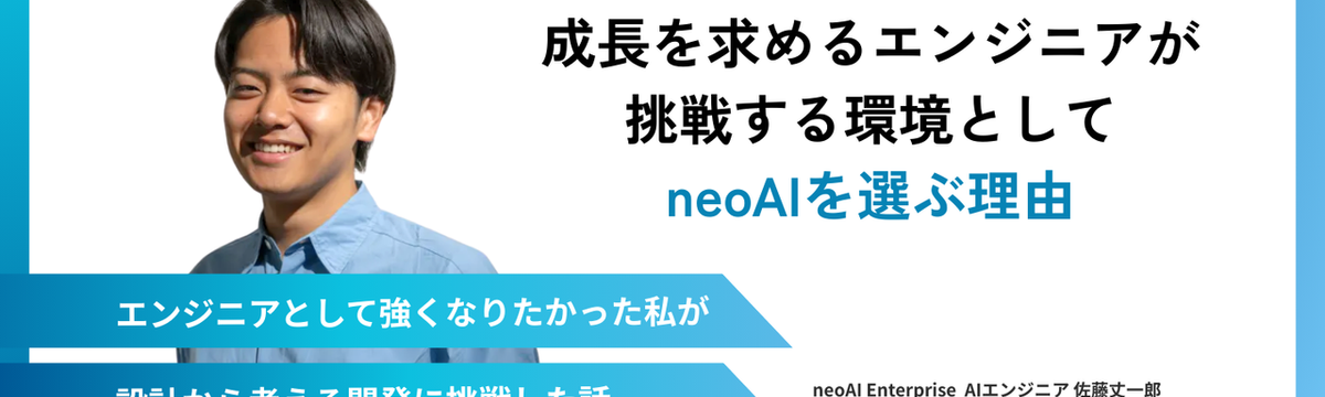 株式会社neoAI 6 days ago Follow 鈴木 真侑 【成長を求めるエンジニアが挑戦する環境としてneoAIを選ぶ理由 】AIエンジニア 佐藤丈一郎 ストーリーでは、現在neoAIで活躍するメンバーを紹介しています!今回ご紹介するのは、プロジェクトマネジメントから全社の開発基盤づくりまで、組織を横断して活躍する佐藤丈一郎(さとう じょういちろ... Read more