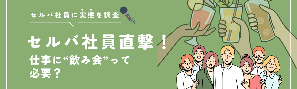 株式会社セルバ about 2 months ago Follow U A and 1 others 【セルバ社員に直撃アンケート!】仕事に“飲み会”って必要? 職場では頻繁に飲み会はありますか?一昔前は“飲みにケーション”という言葉があったほど、飲み会を重視していた企業も多かったのですが、最近は社員同士の飲み会に対してあまりいいイメージを抱かない人も増... Read more