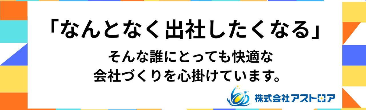 働き方・研修・評価制度 3 days ago Follow 和田 崇 もう雨には濡れません。「まず上司を通して」はいりません。飲み会は完全自由で社長は端っこが定位置。 こんにちは!株式会社アストロア、広報担当の和田です!今回は弊社オフィスの立地だったり、風通しだったり、結構気になるであろう飲み会のことだったり。社内の雰囲気が伝わるような内容をお届けします!☔「... Read more