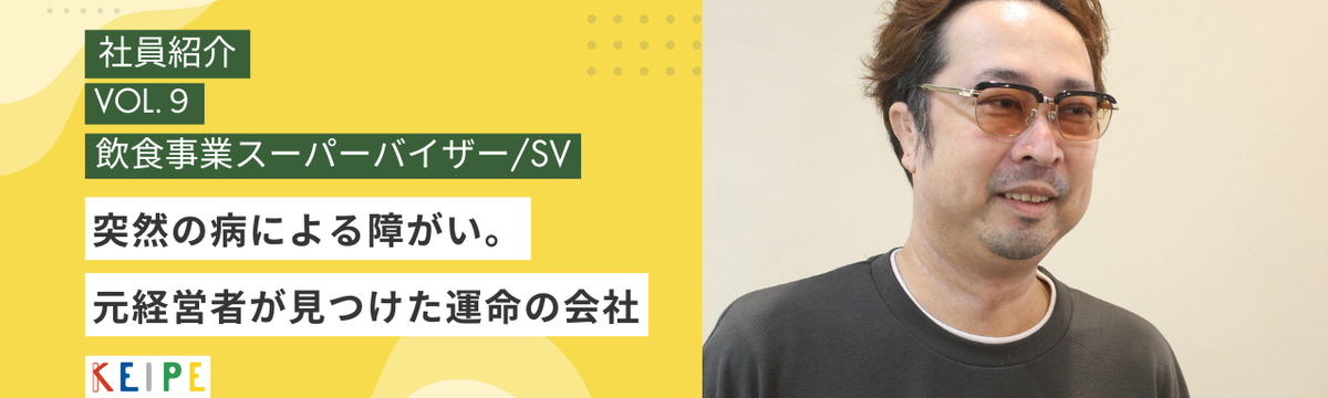 KEIPE株式会社 17 days ago Follow 田澤 ゆか 【社員インタビュー】突然の病による障がい。元経営者が見つけた運命の会社 私たちは「障がいを特別なものにせず、誰もがそこに居ていい社会」を目指して事業を展開しています。このコーナーでは、KEIPEの最前線で働く社員の入社のきっかけや想いを探っていきます。今回は飲食事業... Read more