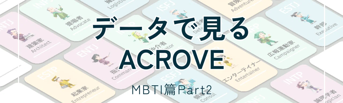 株式会社ACROVE over 1 year ago Follow ACROVE 編集部 【データで見るACROVE】MBTI篇 はじめにこんにちは!株式会社ACROVE、採用チームの増田&改田です。前回の記事はご覧いただけましたでしょうか?引き続き、メンバーに回答してもらったアンケートの内容を公開していきます✨前回の記事... Read more