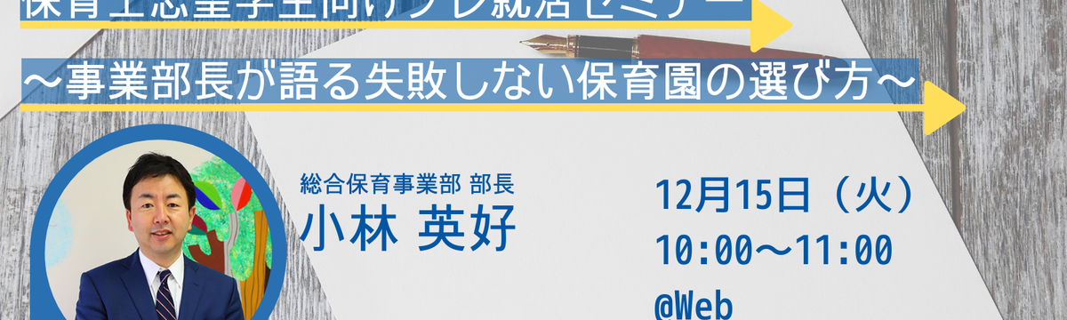 小学館アカデミー保育園の採用 about 5 years ago Follow Nobuyuki Iwai 【開催終了しました※次回開催未定】《22年卒以降保育学生向け》プレ就活セミナー~事業部長が語る失敗しない保育園の選び方~ 【~22年卒以降 保育学生向けトップセミナーのご案内~】皆さんこんにちは!小学館アカデミー保育園の採用担当です。新型コロナウィルス感染拡大の影響で22年卒向けのインターンシップの開催を見合わせて... Read more