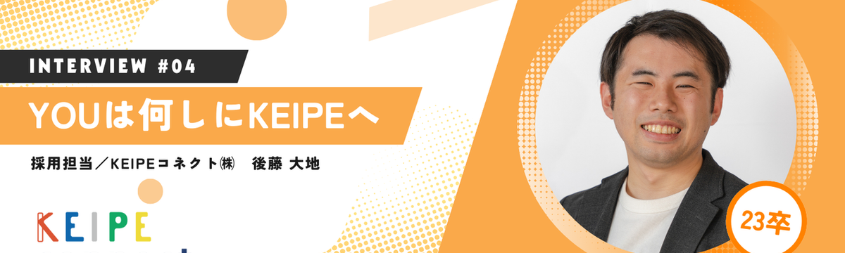 KEIPeople 12 months ago Follow Daichi GOTO 【新卒社員インタビュー】採用担当 後藤の自己紹介 はじめまして、2023年卒・新卒採用担当の後藤大地です。KEIPE株式会社のWantedlyをご覧いただきありがとうございます!KEIPEの仲間を紹介する『KEIPeople』を勝手に開催!初回... Read more