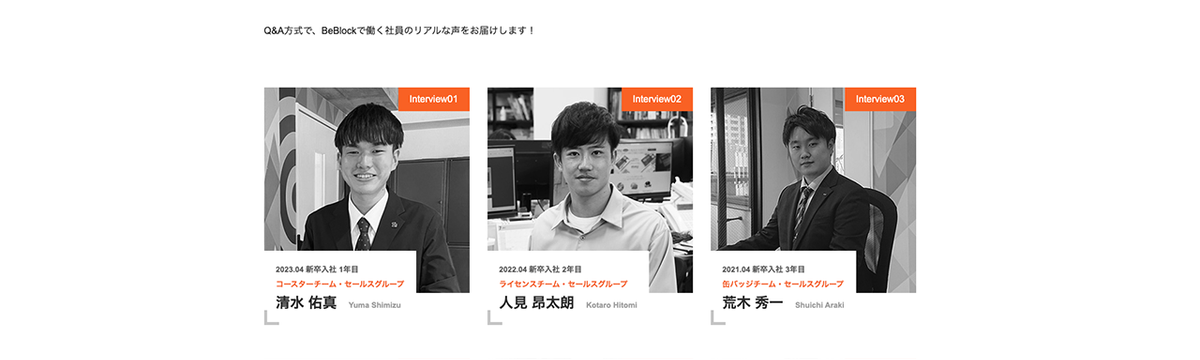 株式会社BeBlock over 2 years ago Follow 田淵朋孝 先輩若手社員のリアルな声(インタビュー)をご紹介! ■若手から上司までのインタビューをお届け!BeBlockの採用ホームページでは、働く社員のリアルな声をお届けしています。現在、2024年新卒のセールススタッフの募集を行っていますが、入社1年目〜... Read more