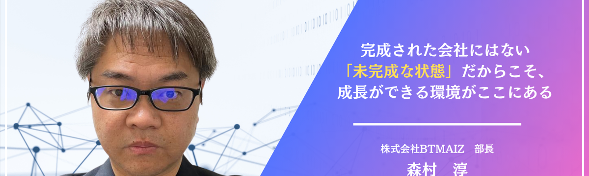 株式会社BTM 3 months ago Follow 佐々木 愛 and 3 others BTMAIZ部長が語る|「未完成」だからこそ、成長ができる環境がここにある こんにちは。人財推進本部の佐々木です。「日本をAI先進国に、人々の生活を豊かに。」をMissionに2025年1月17日に設立された子会社、株式会社BTMAIZですが、これから一緒に会社を創ろう... Read more