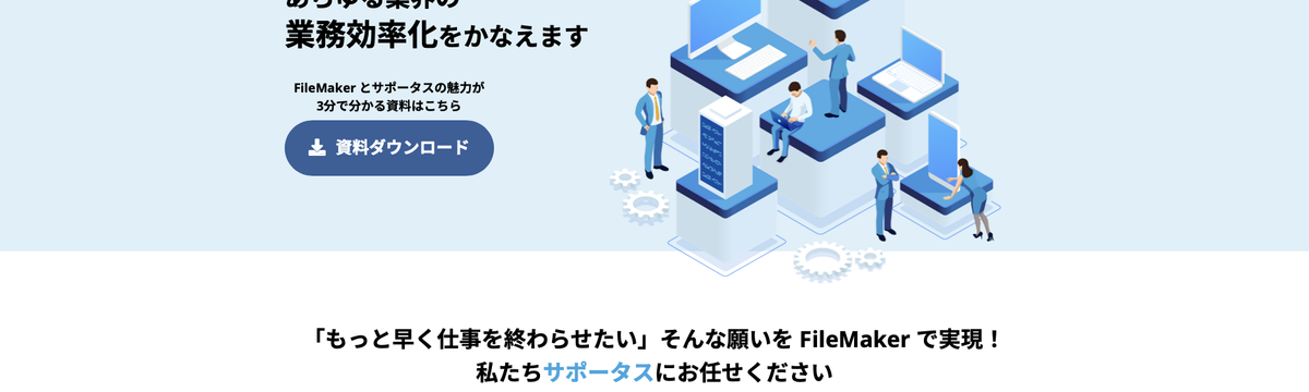 株式会社サポータス over 4 years ago Follow Akira Sasaki FileMaker で あらゆる業界の 業務効率化をかなえます FileMaker で あらゆる業界の 業務効率化をかなえます 編集もうExcelファイルにとらわれないスマートなデータ管理をサポートClaris FileMaker は、貴社の業務フローやビジ... Read more