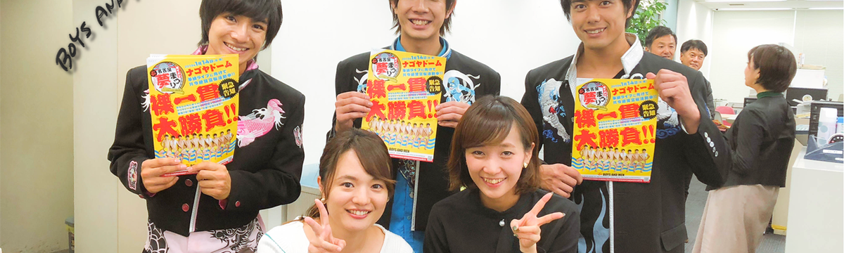 新東通信's post about 7 years ago Follow Saki Mizuno 広告会社の日常?から~"BOYS AND MEN"が名古屋ドームのライブのPRで来社されました! こんにちは。採用担当の水野です。今日は公私混同した記事です。どうかお付き合いください。笑いきなりですが、私半年くらい前から「BOYS AND MEN」のファンになりまして、時々イベントに行ったり... Read more