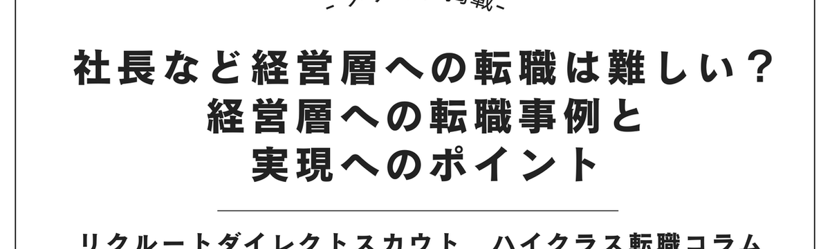Tomoki Awano 5 months ago Follow 社長など経営層への転職は難しい?経営層への転職事例と実現へのポイント 【#リクルートダイレクトスカウト 組織人事コンサル 粟野友樹 監修】組織人事コンサルティングSegurosの粟野友樹が、社長・CxO転職を狙う方に必須の視点を端的にまとめます。✅ 成長フェーズや... Read more