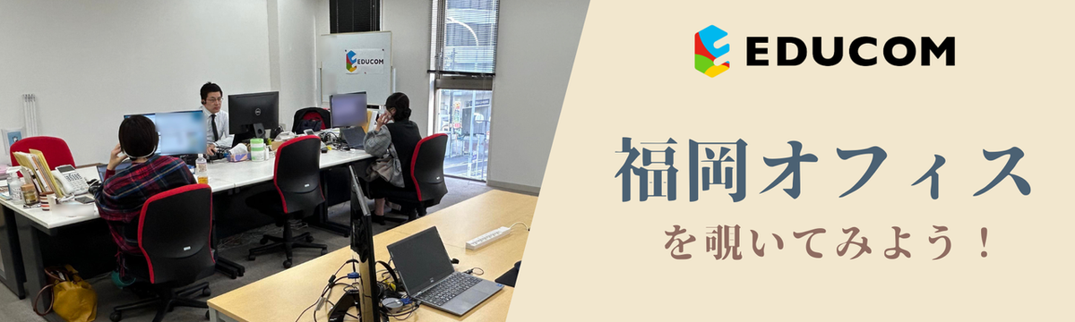 EDUCOMオフィス紹介 over 1 year ago Follow Yuri Naraki and 1 others EDUCOM 福岡オフィスを覗いてみよう! こんにちは! EDUCOMで広報を担当している楢木と申します🌲EDUCOMは日本全国の小中高等学校に学校支援システムを提供する会社です。そのため拠点も日本全国に20拠点存在します🗾✨今回は九州地... Read more