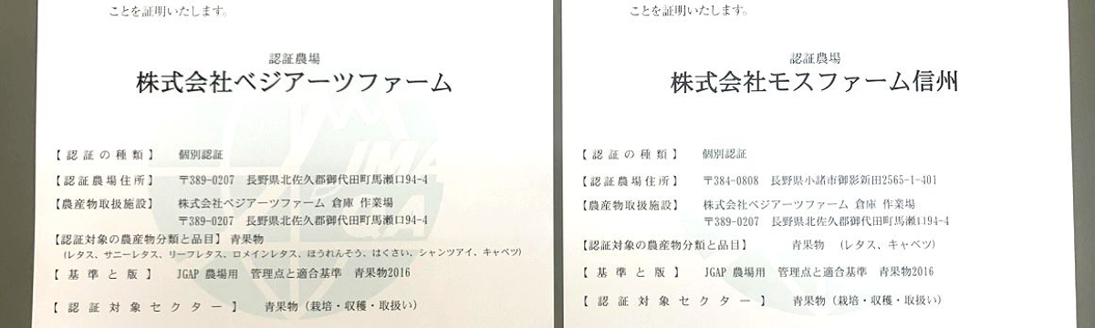 株式会社ベジアーツ about 6 years ago Follow ベジアーツ事務 ASIAGAP取得のご報告 みなさま、大変長らくお待たせいたしました!ベジアーツ通信7月号でもお知らせ致しました通り、≪レタス、パクチー、ほうれん草、白菜≫の品目に関しまして、無事にASIAGAP認証を取得することができま... Read more
