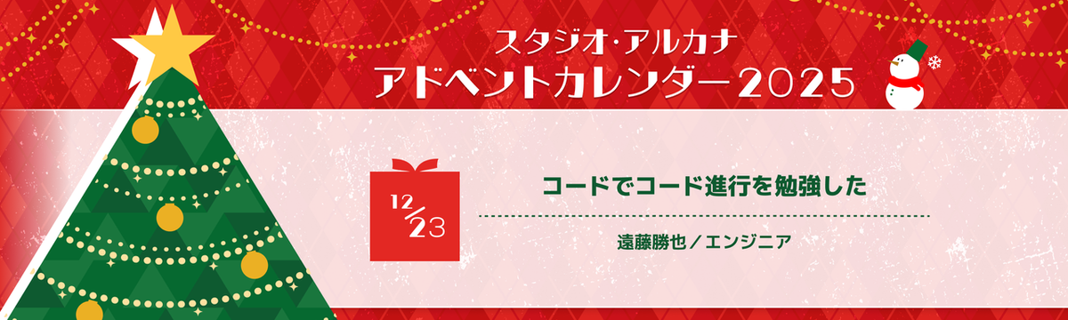 株式会社スタジオ・アルカナ about 2 months ago Follow Katsuya Endoh コード(Code)でコード進行(Chord progression)を勉強した こんにちは。エンジニアの遠藤です。この記事は自分一人ではなく、タナカさん、マツモトさん、カネマツさんとの共著という形を取らせていただきます。また、この記事では音楽理論について触れていますが、音楽... Read more