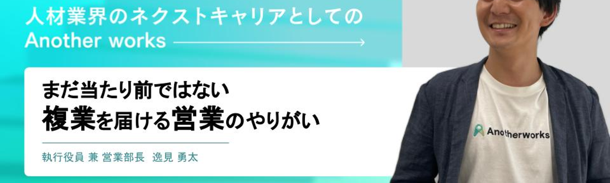 人材業界のネクストキャリアとしてのAnother works over 2 years ago Follow Shogo Yoshikawa and 1 others 営業で成長すべく新文化を創る会社に転職!当たり前ではない複業を届けるやりがい 皆さんの周りで複業をしている人は、どれくらいいるでしょうか?きっと「周りのみんなやってるよ!」というような方は少ないんじゃないでしょうか。これが今の複業市場です。しかし、国の後押しもあり複業をし... Read more