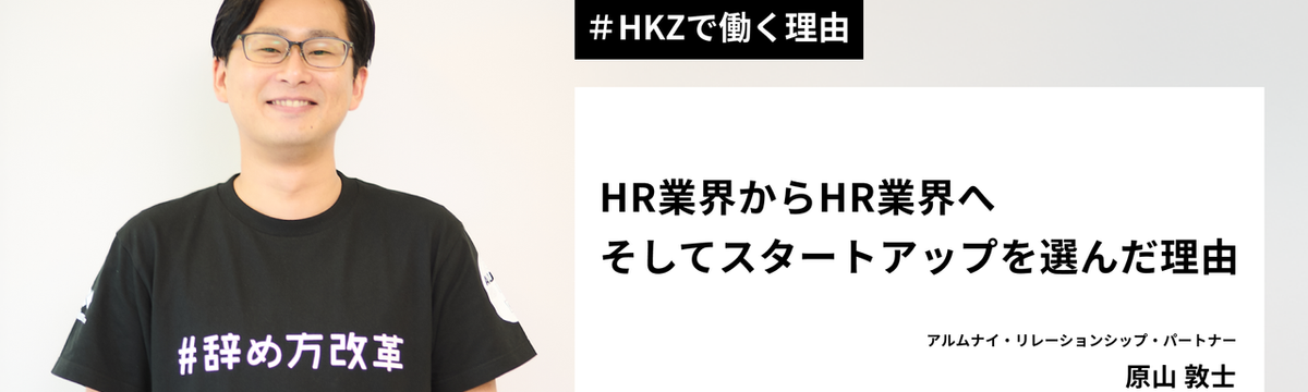 仲間について 10 months ago Follow 原山 敦士 【HKZで働く理由】HR業界からHR業界へ。そして私がスタートアップを選んだ理由。 こんにちは!アルムナイ・リレーションシップ・パートナー(以下、ARP)の原山です!現在ハッカズークにて、アルムナイ活動に取り組むクライアント企業のコンサルティング支援を担当しています。前職では業... Read more