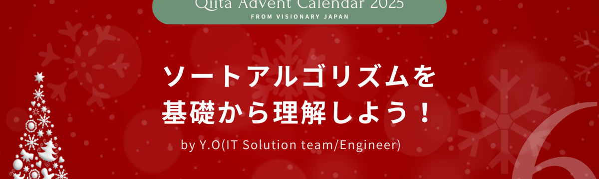 Qiita Advent Calendar 2025 14 days ago Follow VISIONARY JAPAN 採用広報 【Advent Calendar 2025 #6】ソートアルゴリズムを基礎から理解しよう! 🎄はじめに🗓️Qiita Advent Calendar 2025とは?📗12月6日(土)の記事のご紹介📝昨年までのアドベントカレンダー2024年2023年🎁おわりに🎄はじめにこんにちは!VIS... Read more