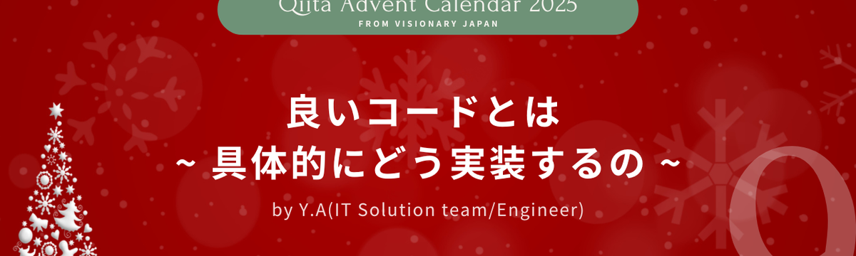 Qiita Advent Calendar 2025 11 days ago Follow VISIONARY JAPAN 採用広報 【Advent Calendar 2025 #9】良いコードとは ~ 具体的にどう実装するの ~ 🎄はじめに🗓️Qiita Advent Calendar 2025とは?📗12月9日(火)の記事のご紹介📝昨年までのアドベントカレンダー2024年2023年🎁おわりに🎄はじめにこんにちは!VIS... Read more