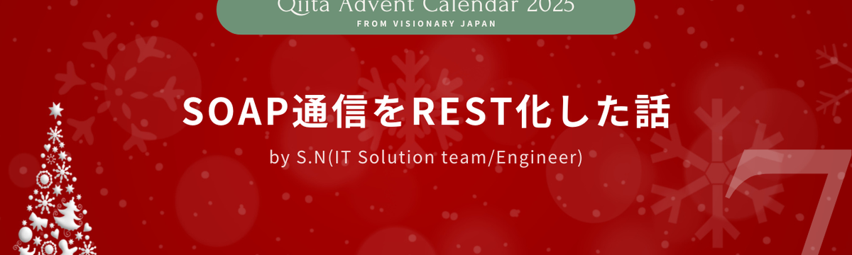 Qiita Advent Calendar 2025 14 days ago Follow VISIONARY JAPAN 採用広報 【Advent Calendar 2025 #7】SOAP通信をREST化した話 🎄はじめに🗓️Qiita Advent Calendar 2025とは?📗12月7日(日)の記事のご紹介📝昨年までのアドベントカレンダー2024年2023年🎁おわりに🎄はじめにこんにちは!VIS... Read more
