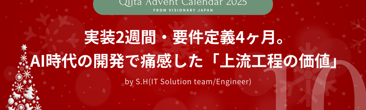 Qiita Advent Calendar 2025 11 days ago Follow VISIONARY JAPAN 採用広報 【Advent Calendar 2025 #10】実装2週間・要件定義4ヶ月。AI時代の開発で痛感した「上流工程... 🎄はじめに🗓️Qiita Advent Calendar 2025とは?📗12月10日(水)の記事のご紹介📝昨年までのアドベントカレンダー2024年2023年🎁おわりに🎄はじめにこんにちは!VI... Read more