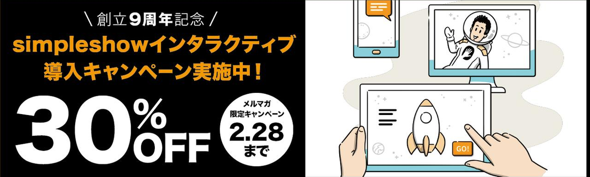株式会社simpleshow Japan almost 3 years ago Follow 青山 南 【今だけ30%OFF】社内研修向けe-learningコンテンツをキャンペーン価格で制作【simpleshow J... 本日は、社内研修担当の方向けに、お得なキャンペーンのお知らせです。この度、simpleshow Japanは、2023年1月31日に創立9周年を迎えました。これもひとえに皆様のご支援、ご愛顧の賜... Read more
