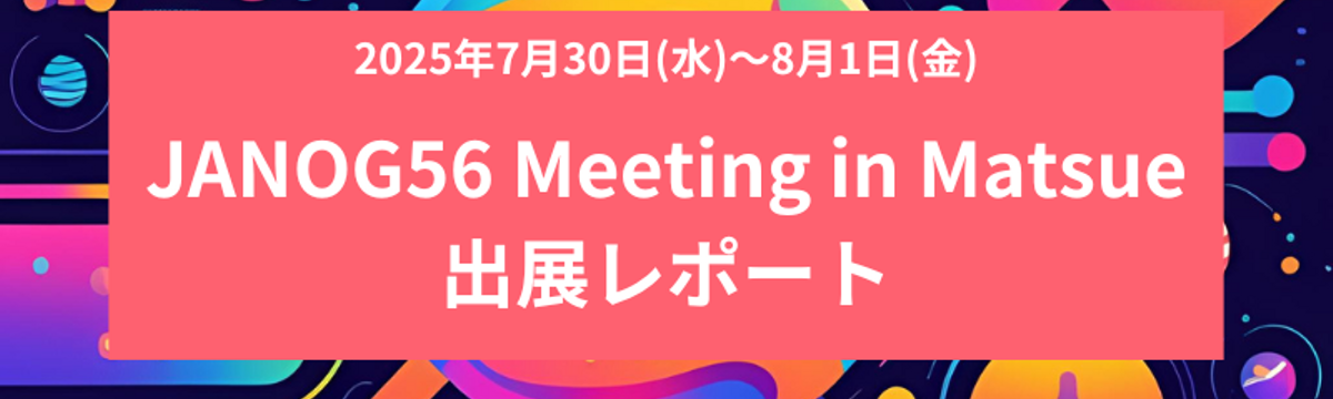 イベントレポート over 1 year ago Follow Kohei Matsukawa and 1 others JANOG54ミーティング in NARA参加レポート! 皆さん、こんにちは!dual&Co.の松川です。先日、奈良で開催されたJANOG54 meetingに参加してきましたので、今回は、そのレポートをお届けしたいと思います💫■ JANOGって何?🤔... Read more