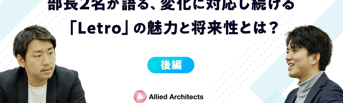 アライドアーキテクツ 事業部 almost 2 years ago Follow 中途 and 2 others 部長2名が語る、変化に対応し続ける「Letro」の魅力と将来性とは?〜後編〜 弊社は、日本・アジア・欧米に7つの拠点を持つ、マーケティングDX支援企業です。同社は2022年7月から新たなミッション「世界中の人と企業の創造がめぐる社会へ」を掲げ、自社で開発・提供するSaaS... Read more
