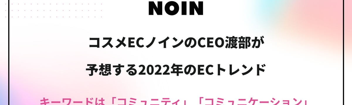 ノインのこと almost 4 years ago Follow Marina Watanabe and 1 others コスメECノインのCEO渡部が予想する2022年のECトレンド〜キーワードは「コミュニティ」「コミュニケーション」 〜 ノインの渡部です。弊社は2017年より化粧品ECプラットフォーム「NOIN」を提供しています。ECは今、大きな転換期を迎えつつあります。今回は、このECの転換期とはどういうことなのか、その先に何... Read more