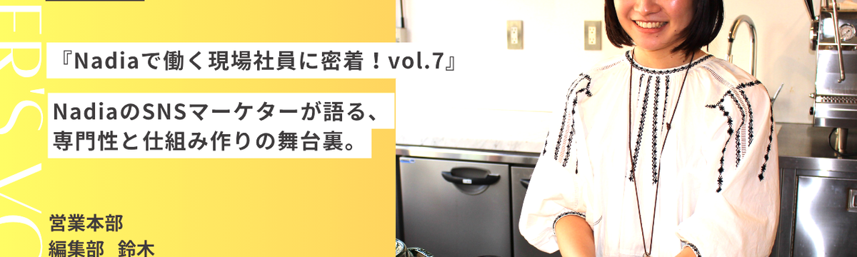 Nadiaで働く現場に密着 about 14 hours ago Follow Mamiko Ueda and 2 others 『Nadiaで働く現場社員に密着!vol.7』Nadiaの【営業本部 編集部 SNSマーケター 】の仕事 こんにちは、採用担当の上田です!今日は大人気シリーズ【Nadiaで働く現場社員に密着シリーズ】Vol.7です!今日は、Nadiaの中でも様々な領域で存在感を発揮している鈴木さんに、改めてインタビ... Read more