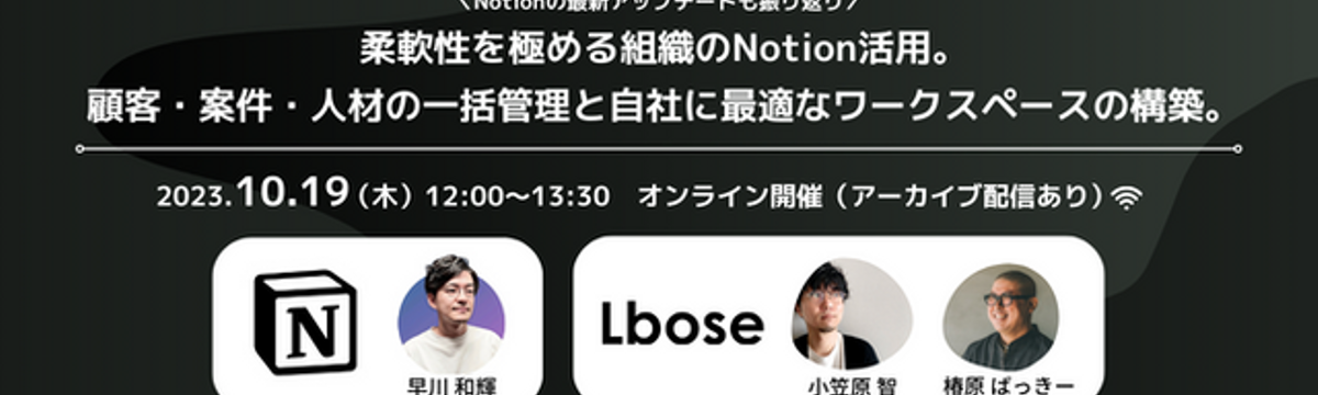 株式会社Lbose about 2 years ago Follow maho mizukura and 3 others 柔軟性を極める組織のNotion活用。顧客・案件・人材の一括管理と自社に最適なワークスペースの構築。 「”誰と、どこで、何をするか”を、もっと自由に。」をミッションにかかげ、企業のデジタルプロダクト開発支援を行う株式会社エルボーズ(本社:熊本県熊本市、代表取締役:小谷草志)は10月19日(木)、... Read more