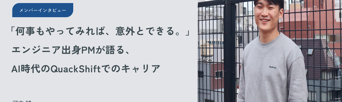 株式会社QuackShift 15 days ago Follow Rie Kondo 「何事もやってみれば、意外とできる。」エンジニア出身PMが語る、AI時代のQuackShiftでのキャリア QuackShiftのプロジェクトマネージャー(PM)は、ただの進行管理ではありません。エンジニアと同じ言語で会話し、技術からプロジェクトを前に進めていく存在です。だからこそ、エンジニア出身のあ... Read more
