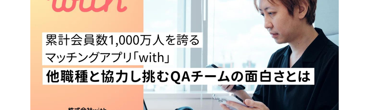 株式会社エニトグループ over 1 year ago Follow 株式会社エニトグループ 採用担当(with/Omiai) 累計会員数1,000万人 を誇るマッチングアプリ「with」:他職種と協力し挑むQAチームの面白さとは こんにちは、エニトグループ(with/Omiai)の採用担当です。マッチングアプリで結婚された方の割合は年々高まっており、直近では1年以内の結婚の4人に1人がマッチングアプリ経由という調査結果(... Read more