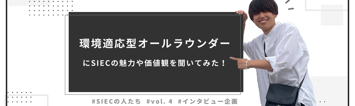株式会社SIEC about 2 years ago Follow 石田 充輝 and 1 others 【SIECの人たち vol.4】環境適応型オールラウンダーのインターン生にSIECの魅力や価値観を聞いてみた! みなさんこんにちは。株式会社SIECの広報見習い、みつきです!本日は、インタビュー企画第4弾です。今回は、唯一の出社組で、僕にとっては1学年上の先輩である、野崎くんにお話を聞いてまいりました!本... Read more