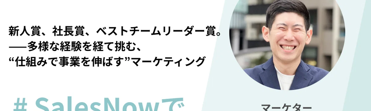 株式会社SalesNow 1 day ago Follow Nemoto Mami 新人賞、社長賞、ベストチームリーダー賞。多様な経験を経て挑む、“仕組みで事業を伸ばす”マーケティング SalesNowにマーケターとしてジョインした、髙橋 鉄平(たかはし てっぺい)。次の挑戦の場としてなぜSalesNowを選んだのか、今何に取り組んでいるのか、何を想い業務に取り組んでいるのか、... Read more