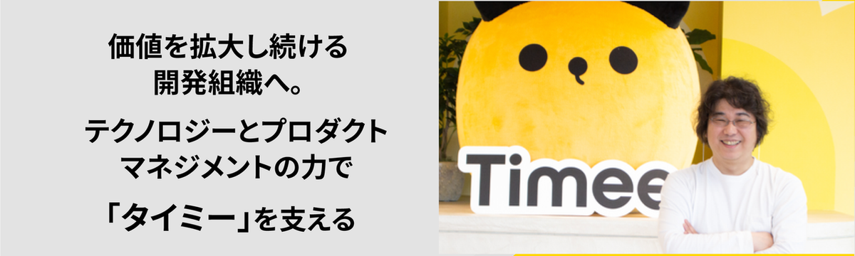 社員インタビュー over 1 year ago Follow タイミー 採用広報 and 1 others 価値を拡大し続ける開発組織へ。テクノロジーとプロダクトマネジメントの力で「タイミー」を支える 「『働く』を通じて人生の可能性を広げるインフラをつくる」をミッションに掲げるタイミー。2023年5月には、執行役員 VPoT(VP of Technology)に山口 徹さんを迎えて、さらなる事... Read more