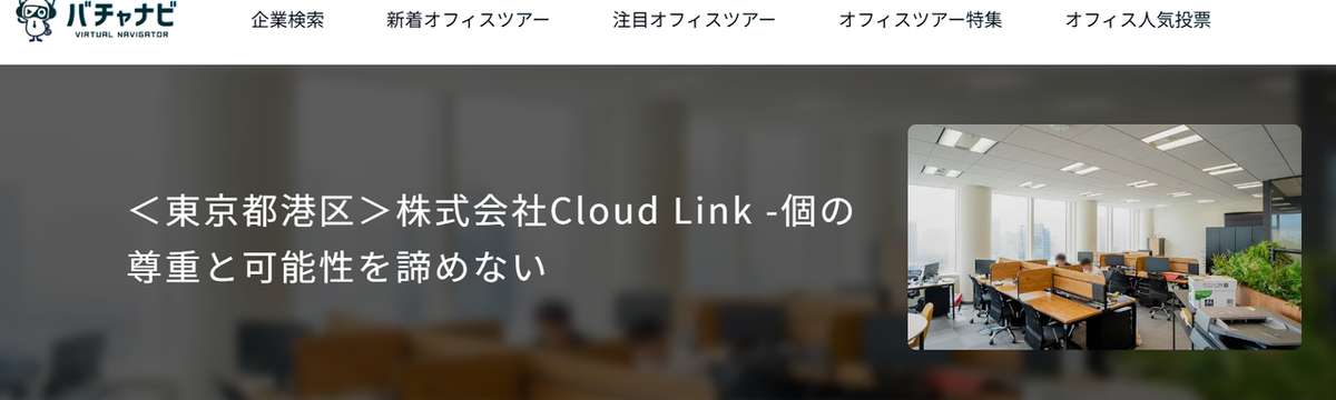 NEWS TOPICS about 1 year ago Follow NO NAME このたび東京オフィスも、バーチャルオフィス紹介メディア『バチャナビ』で掲載されました! 株式会社DINAMICAが運営するバチャナビにて、CloudLinkのオフィスを紹介いただきました🏢✨『バチャナビ』とは?バチャナビは360度画像を活用した企業のバーチャルオフィス紹介記事を中心... Read more