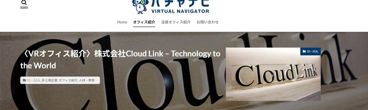 NEWS TOPICS over 2 years ago Follow 猪熊 由乃 CloudLinkのオフィスが、バーチャルオフィス紹介メディア『バチャナビ』で掲載されました! 株式会社DINAMICAが運営するバチャナビにて、CloudLinkのオフィスを紹介いただきました。『バチャナビ』とは?バチャナビは360度画像を活用した企業のバーチャルオフィス紹介記事を中心に... Read more