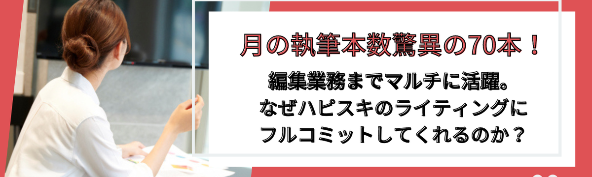 株式会社ハピスキ over 2 years ago Follow UMINO ハピスキのエースライターさっちゃんさんにインタビューしました! こんにちは!株式会社ハピスキの海野です。弊社では現在、一緒に働いてくれるメンバーを積極的に採用しております。今回インタビューに答えてくれたメンバーは、ハピスキのエースライターさっちゃんさんです!... Read more