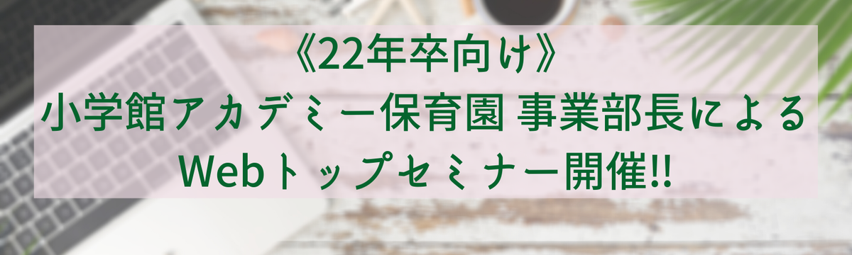小学館アカデミー保育園の採用 almost 5 years ago Follow Nobuyuki Iwai 《22年卒向け》アカデミー保育園Webセミナー開催中‼ 小学館アカデミー保育園では、2022年卒業の新卒の方向けの採用活動を進めています。新型コロナウィルス感染拡大の状況を受け、保育園で開催する見学会や体験会、大規模イベントへの出展を控えておりますが... Read more