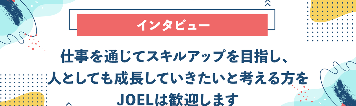 JOEL(株式会社ジョイント・エレメンツ・コンサルティング) almost 5 years ago Follow 西岡 【JOELマネージャーインタビュー】仕事を通じてスキルアップを目指し、人としても成長していきたいと考える方をJOE... こんにちは!!JOELデザイナーの西岡です^^今回は、JOEL(ジョエル)でマネージャーとして活躍されている 田中さんに話をお伺いました!JOELの雰囲気が伝わればと思います^^■JOELとの出... Read more