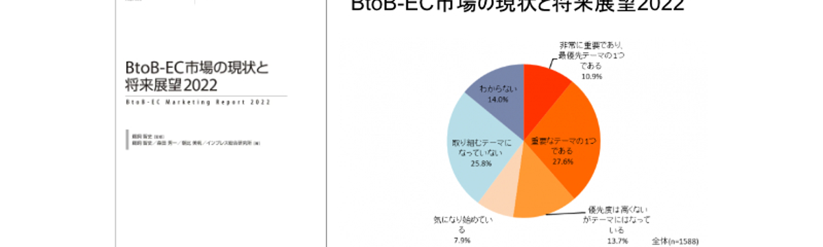 株式会社Daiのはたらき方 over 3 years ago Follow Ukai Satoshi 法人間のオンライン取引「BtoB-EC」に関する書籍を発刊しました! BtoB-EC市場の現状と将来展望2022書籍の概要成長を続けるBtoB-EC市場。経済産業省が発表した調査では、BtoB-ECの市場規模は334兆円、EC化率は33.5%に達し、BtoC市場の... Read more