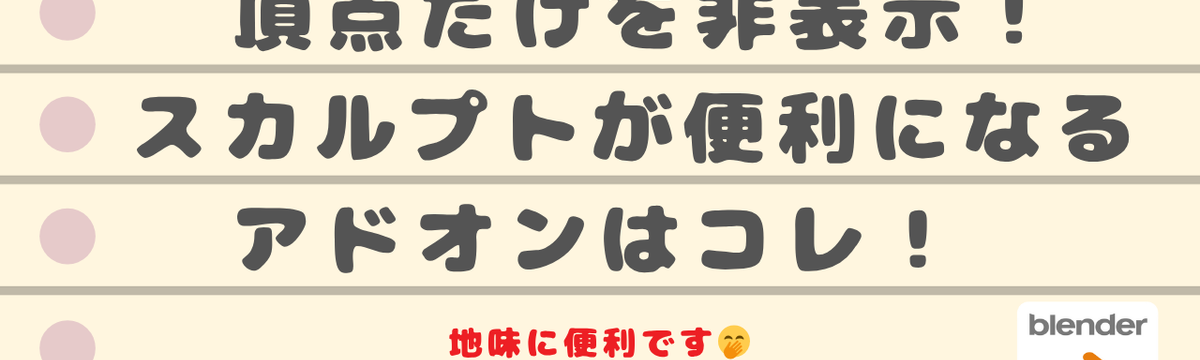 Aya Sakai 9 days ago Follow 【Blender】頂点のみを隠してスカルプトが捗るアドオン!Lock Vertexでできること 今回はスカルプトでモデリングするときのちょっとした小技です。アドオンを使って選択した頂点を隠す(選択できなくする)というものなんですが、地味~に便利だったので紹介します!文章だと分かりづらいと思... Read more