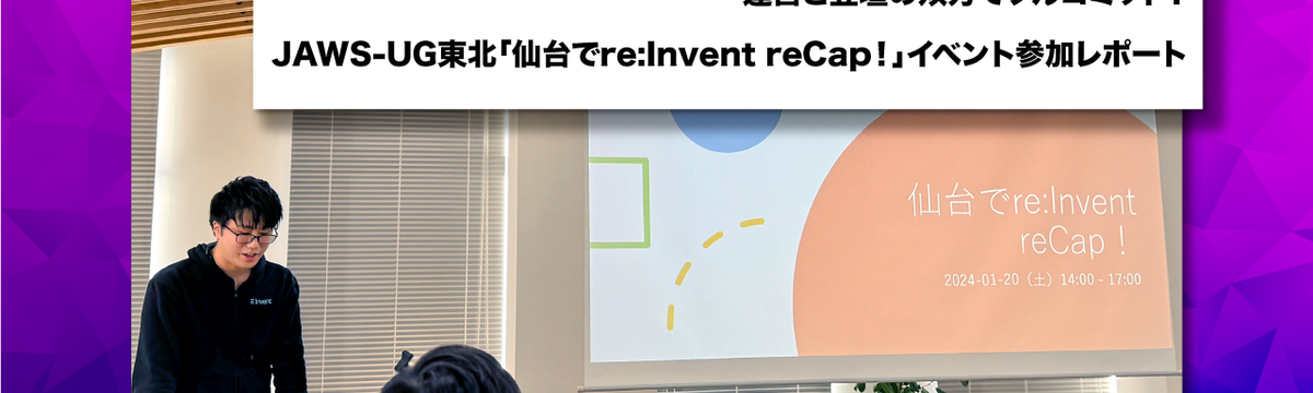 株式会社ヘプタゴン over 1 year ago Follow Takahito KIKUCHI and 1 others 運営と登壇の双方でフルコミット!JAWS-UG東北「仙台でre:Invent reCap!」イベント参加レポート 株式会社ヘプタゴン ビジネスデベロップメントの菊池です。私たちの会社は企業文化に「コミュニティフルコミット」を掲げており、技術コミュニティを初めとする課外活動への積極的な参加を奨励しています。2... Read more