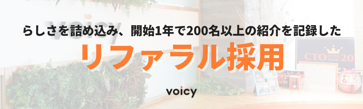 株式会社Voicy over 3 years ago Follow はるな 髙森 “らしさ”を詰め込み、開始1年で200名以上の紹介を記録したVoicyのリファラル採用を振り返る こんにちは。Voicyカンパニークリエイターの “はる” こと高森はるなです。Voicyの行動指針のひとつに、こんな言葉があります。“組織も一つのプロダクト。全員でアップデートを。”弊社では組織... Read more