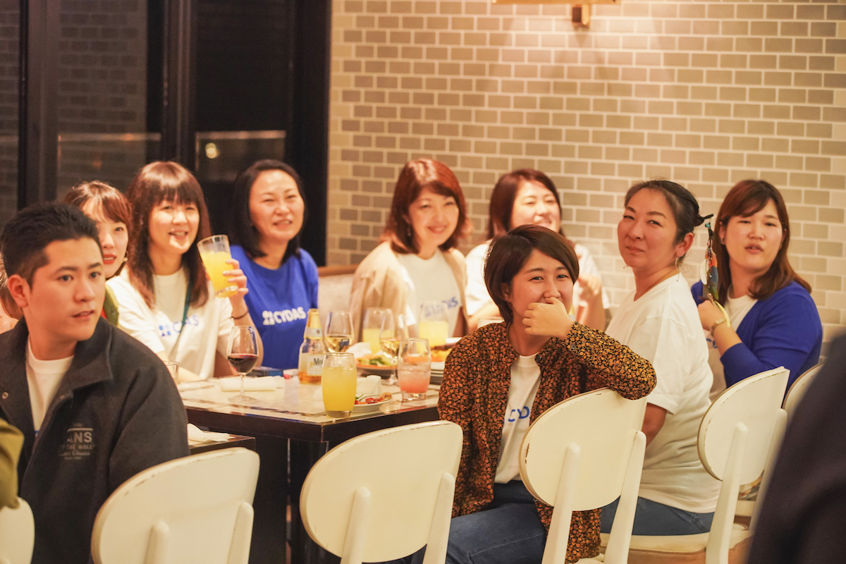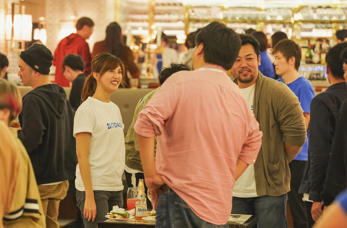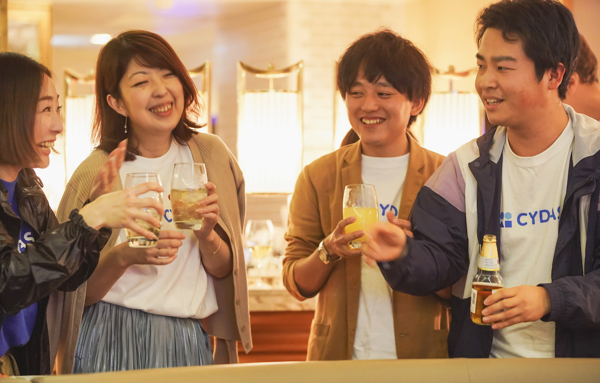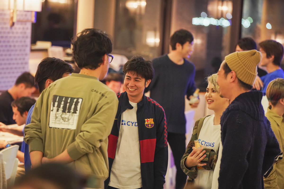 そんな松田さんの乾杯から一気に熱が高まったサイダスメンバー。周りを取り囲む素敵なお料理をこれでもかとお皿に取り分けるメンバーや、いつもはフルリモートで会えないメンバーとの再会に「久しぶりー!乾杯ー!」と盛り上がるメンバーも。あちらこちらで、お互いを労う乾杯の音が聞こえて来ます。