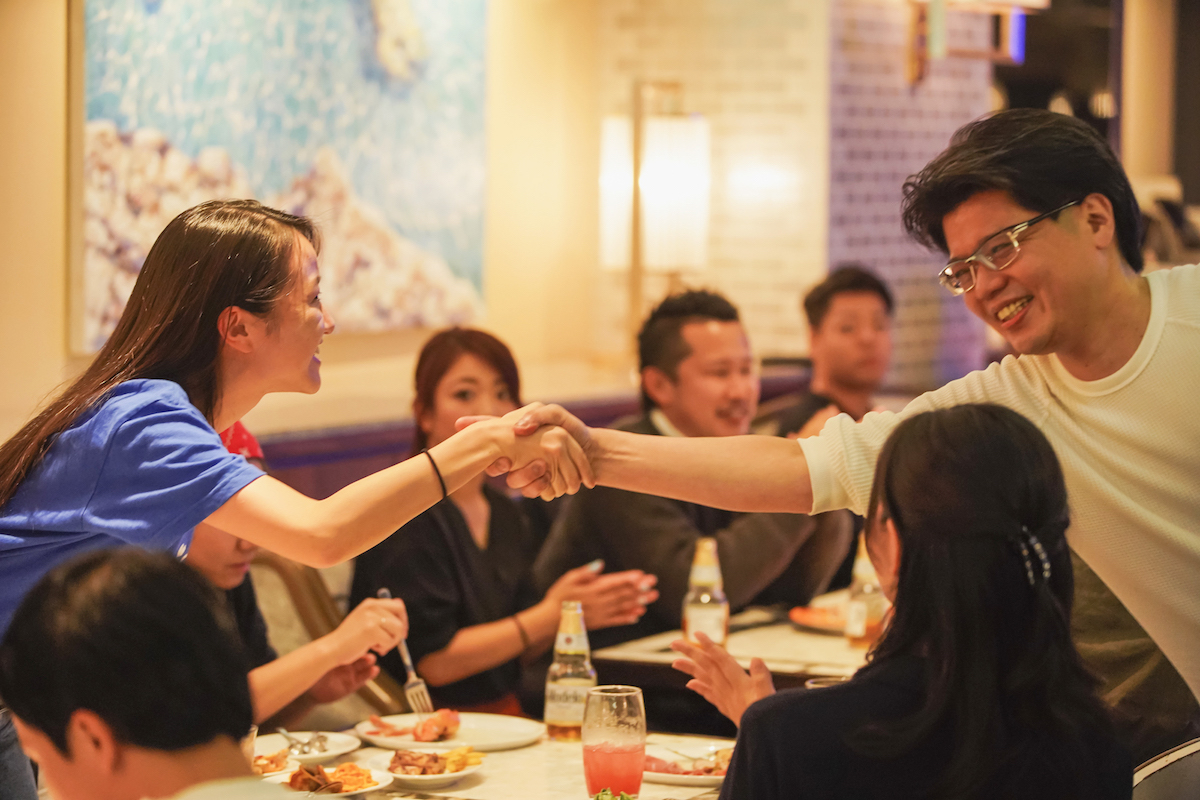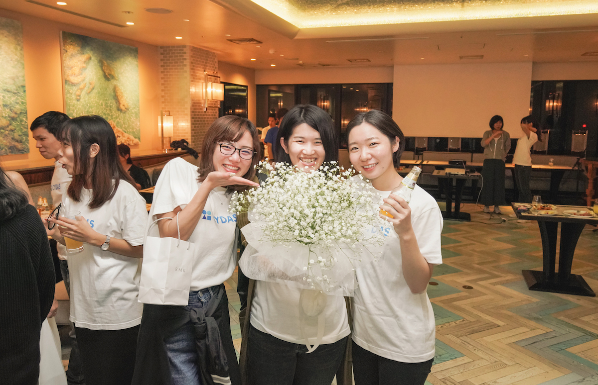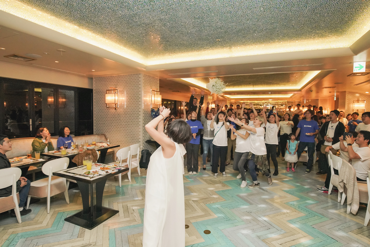 そんな松田さんの乾杯から一気に熱が高まったサイダスメンバー。周りを取り囲む素敵なお料理をこれでもかとお皿に取り分けるメンバーや、いつもはフルリモートで会えないメンバーとの再会に「久しぶりー!乾杯ー!」と盛り上がるメンバーも。あちらこちらで、お互いを労う乾杯の音が聞こえて来ます。