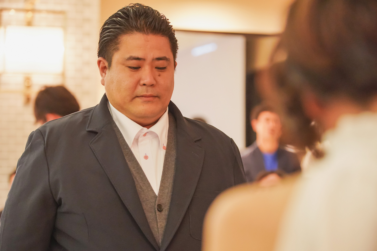 松田さん:「ご結婚おめでとうございます。二人がこうして、結婚して、幸せになってくれて、本当に嬉しく思います。自分の会社の社員がこうやって・・・幸せになってくれて・・・嬉しいよね・・・なんかね・・・!(ここで暫く泣く松田さん)