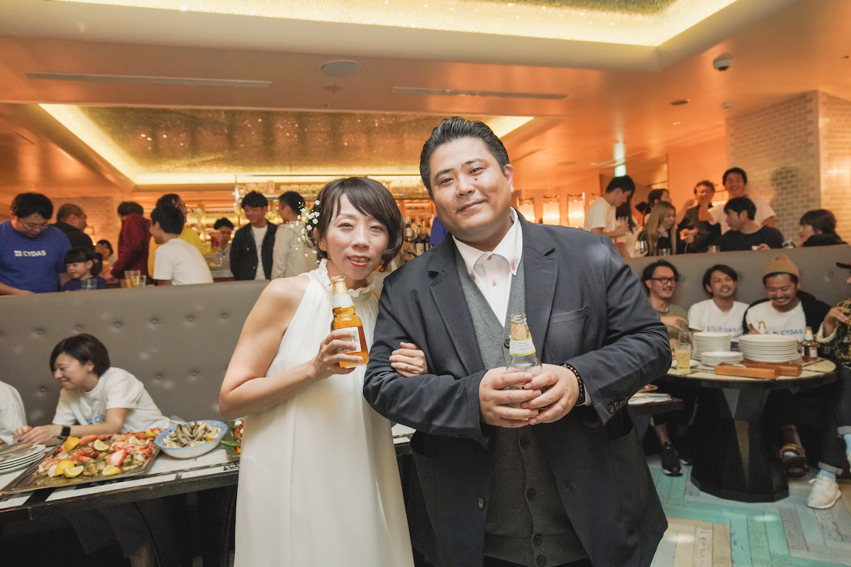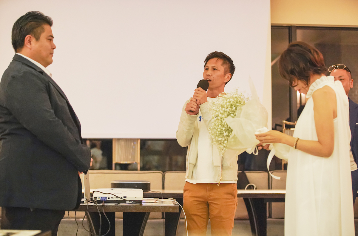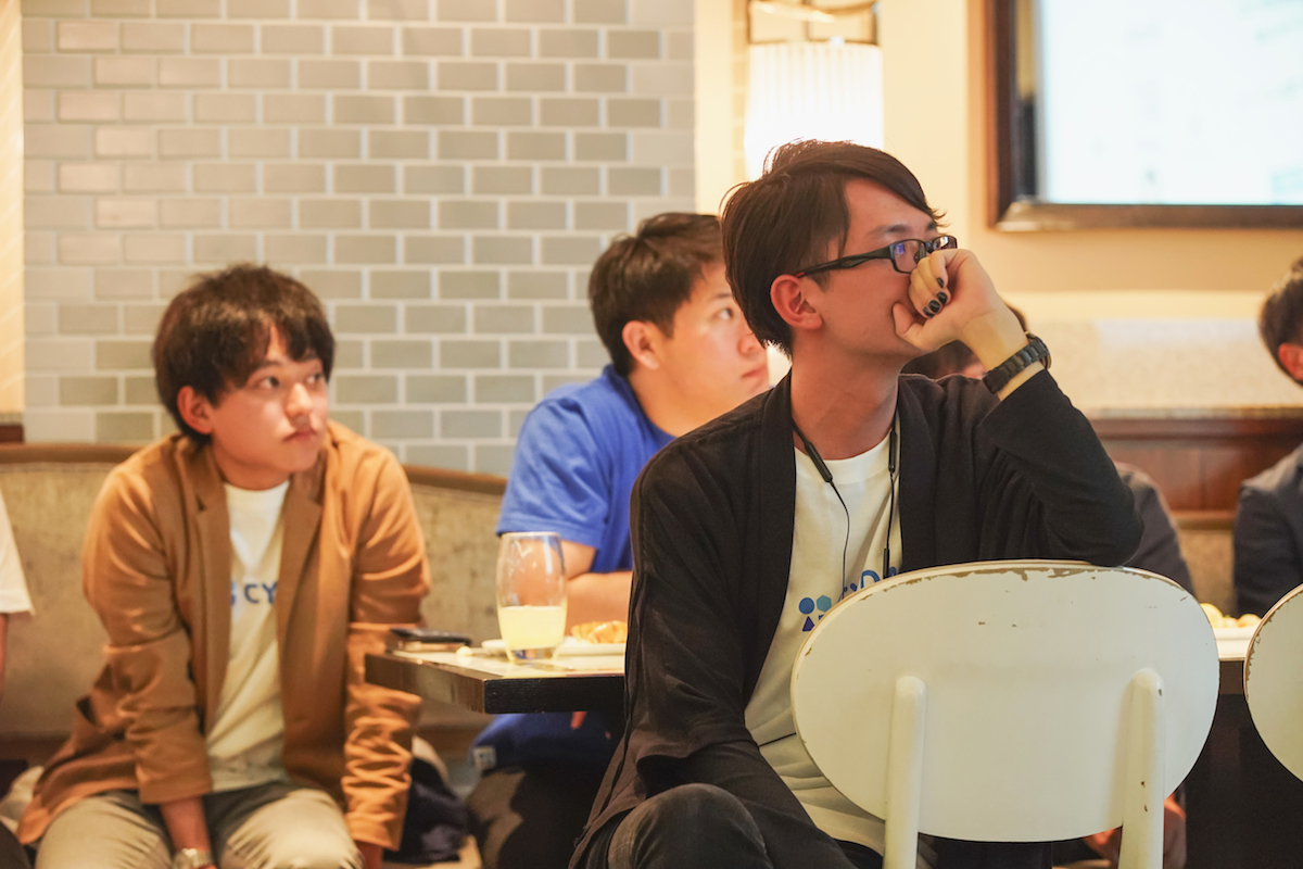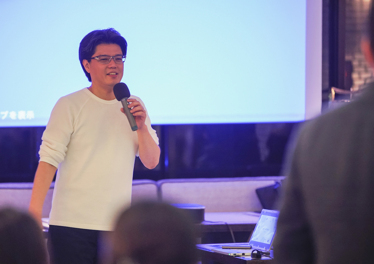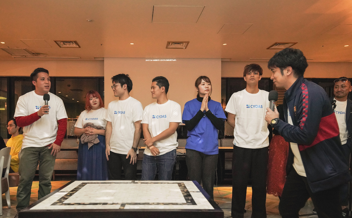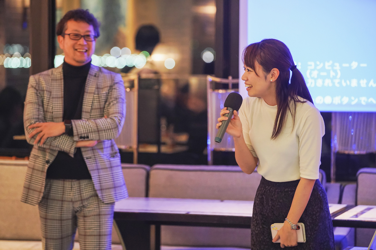 実はこの後、インサイドセールスチームのリーダー・砂川さんの「一発芸コーナー(笑)」が始まるはずだったのですが、なんと奥さんであるカスタマーサポートチームのリーダー・富橋さんと一緒に会社に残っているとのこと。どうしても今日中に対応しなければならない事案が発生してしまい、まだ会場には向かっていませんでした。