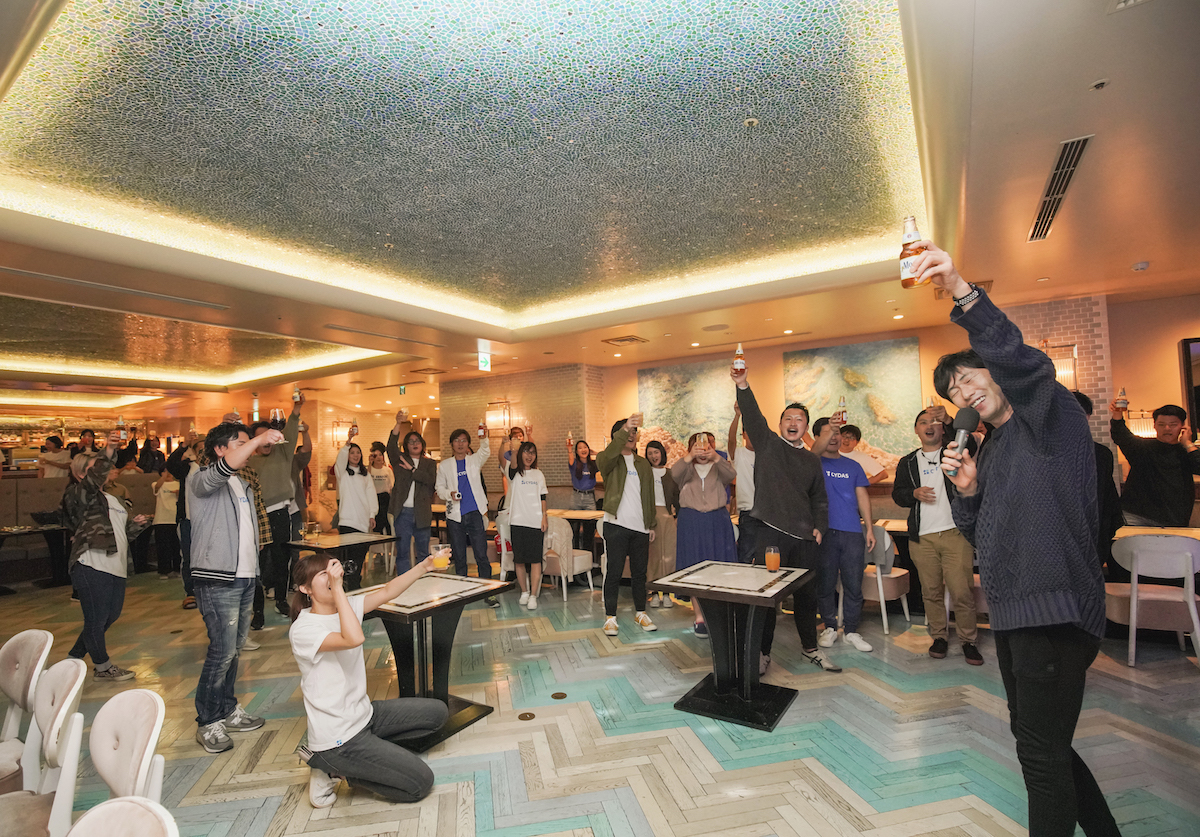 松田:「みなさん、1年間お疲れさまでした。今年はもう、色んなことが動いた激動の1年だったと思います。皆さん本当によく頑張ってくれました。明日からお休みに入るけど、休みが長くて1月から会社に行くのやだなーなんて事言うのやめてね、寂しいから(笑)今日は思いっきり楽しみましょう!乾杯ーーーーー!!!!」